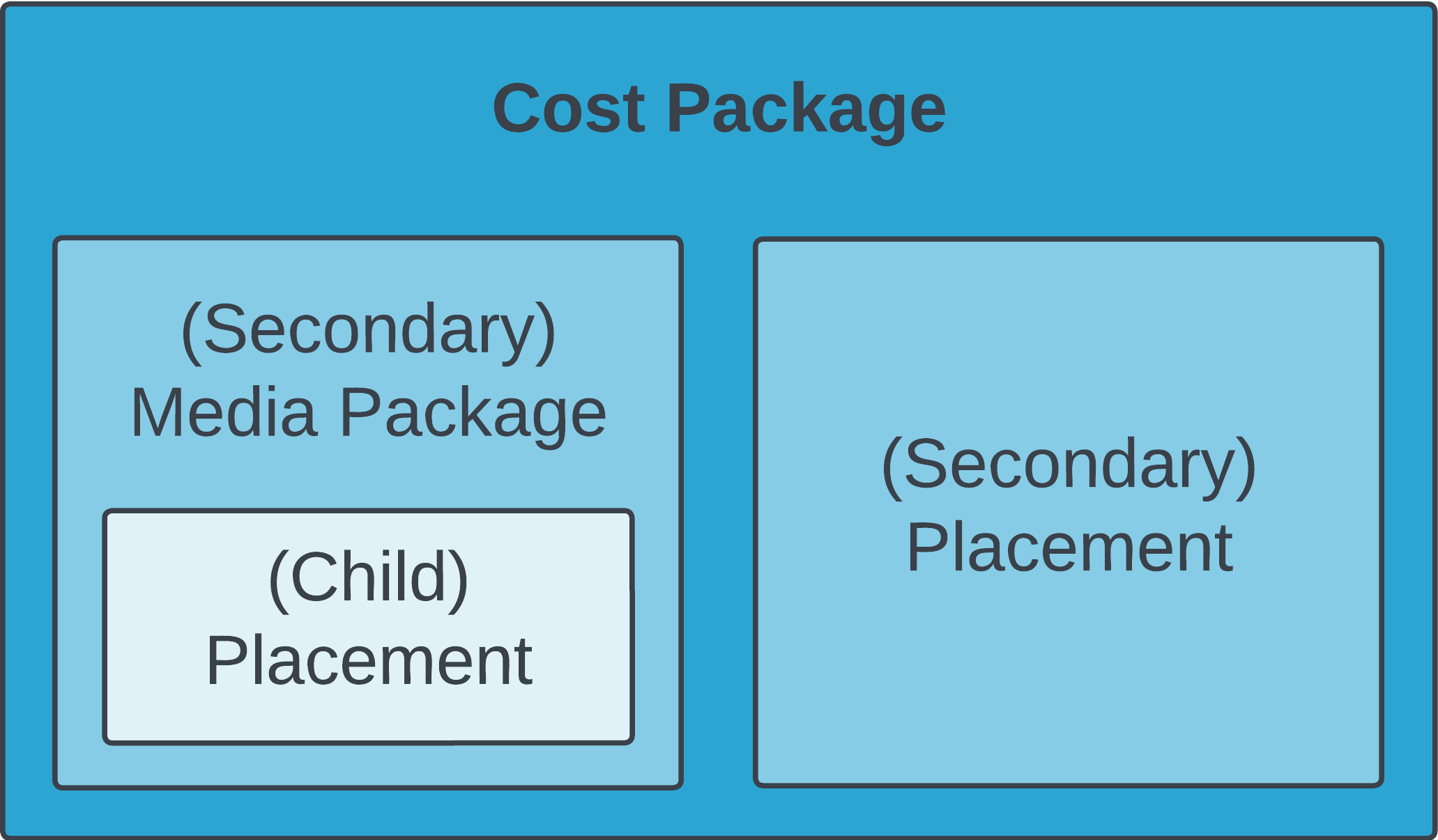 A Cost Package represents a group of (secondary) Placements and/or (secondary) Media Packages that are purchased together at a single and fixed total cost, from the same vendor.