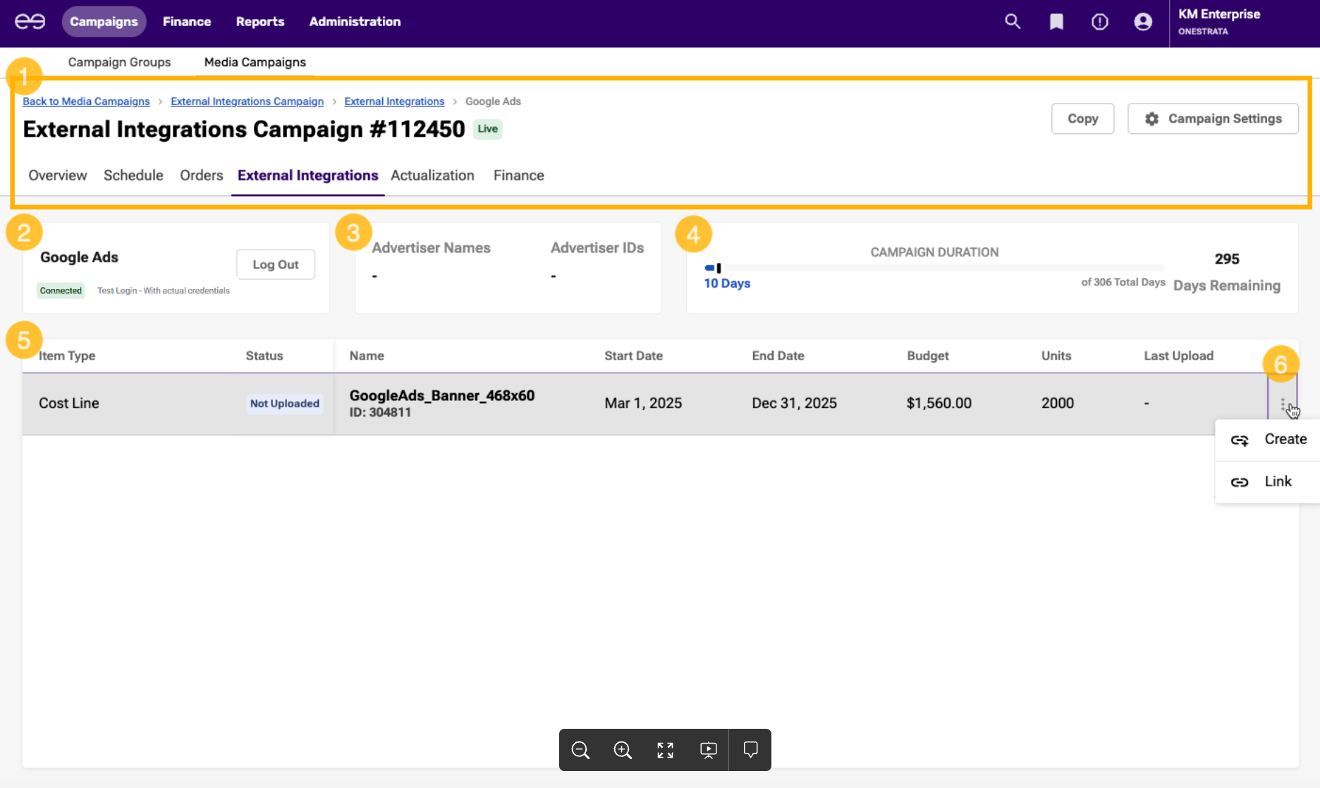 Once linked, the identifier of the search campaign—as used by the Search provider—is displayed in OneStrata, enabling a more seamless workflow between the media planning and search advertising teams.